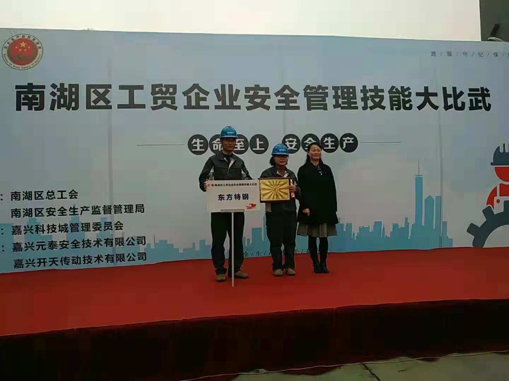 In order to improve the safety production management level of enterprises, further strengthen the safety quality of enterprise employees, and promote enterprises to implement the main responsibility for safety production, the "Life First, Safety Production" sponsored by the Nanhu Federation of Trade Unions Office, Nanhu District Industrial and Trade Enterprise Safety Management Skills Competition was held in 2018. On November 21, it was grandly held in Jiaxing Kaitian Transmission Technology Co., Ltd. The participants include the district federation of trade unions, the head of the district safety supervision bureau and the head of the department, the relevant heads of the (street, park) federations of trade unions, safety supervision teams, and 15 industrial and trade enterprises, including Zhenshi Group Oriental Special Steel Co., Ltd. As a representative of Xinfeng Town Federation of Trade Unions, I went to participate in this competition.